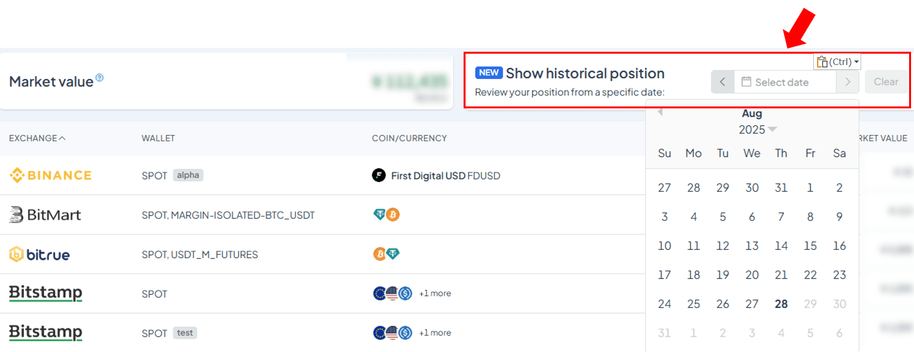 This feature is especially useful when you want to know “How much did I hold on that day?” (You can access the Live View feature here.)